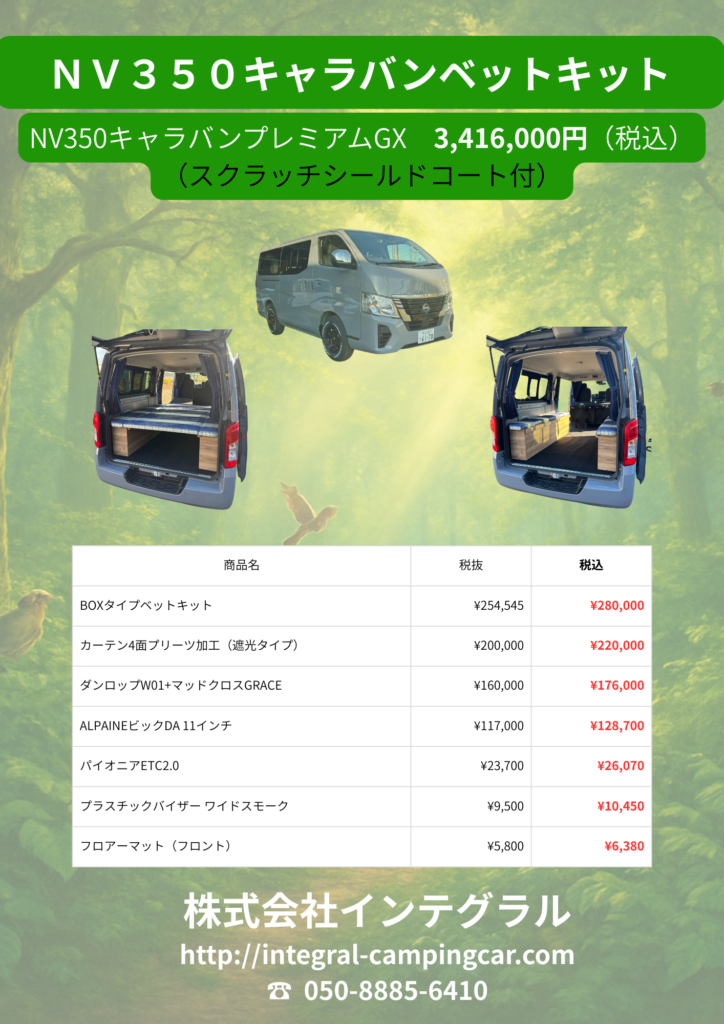 2026年1月12日 / 最終更新日時 : 2026年1月12日 投稿者 お知らせ NV350キャラバンベットキット販売開始 NV350キャラバンベットキット販売開始いたしました 詳しくはこちらのページをご覧ください